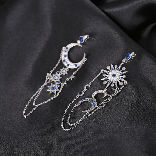 Zircon Female Earrings Earrings Eight-pointed Star Moon Long Tassel Earrings Earrings Earrings
